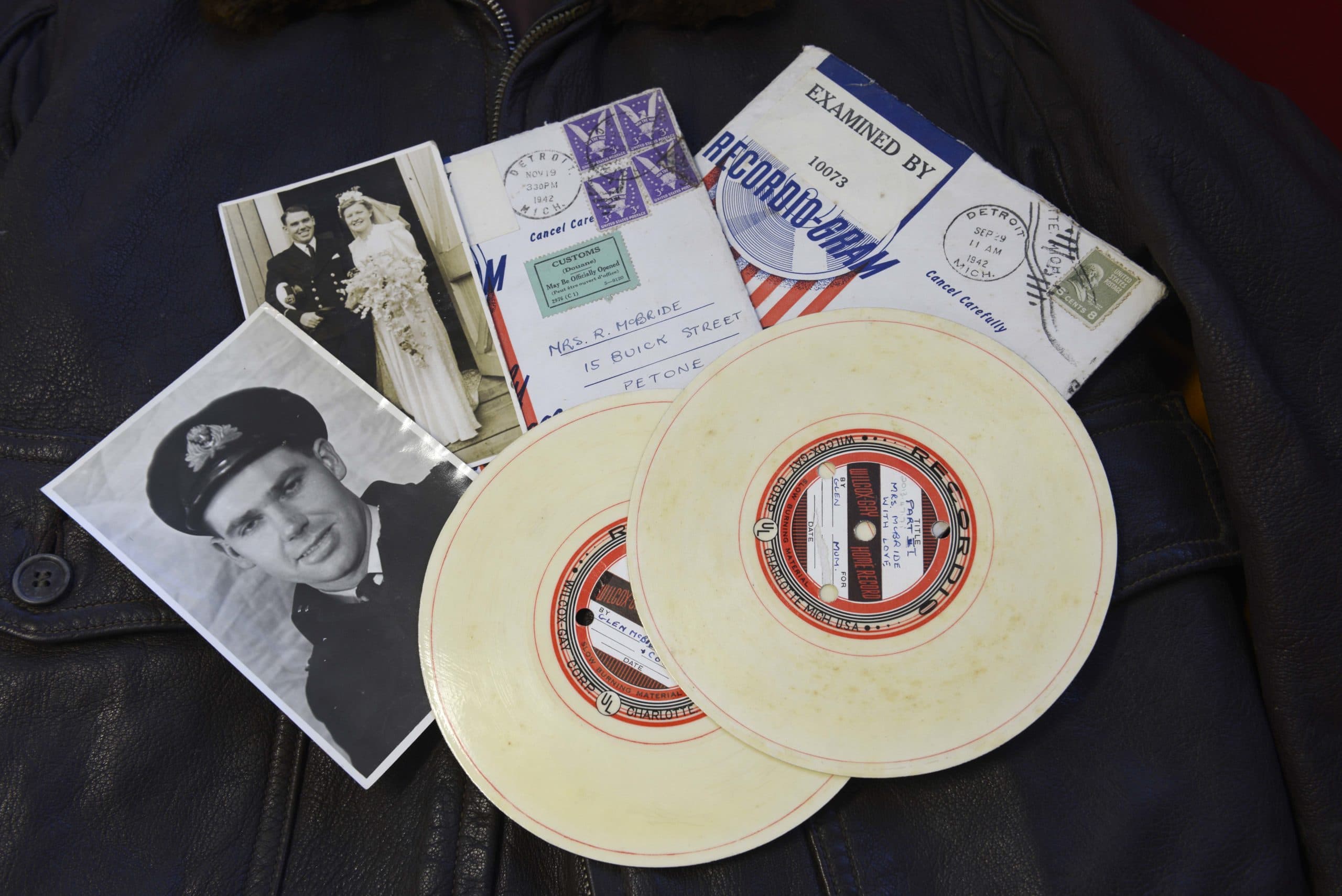 They were married in April 1945 and spent just five weeks together before Glen returned to his role as an observer in the Fleet Air Arm of the Royal Navy. He sent voice recordings home to his family during his overseas training and these old records have just been digitised by the Navy Museum.