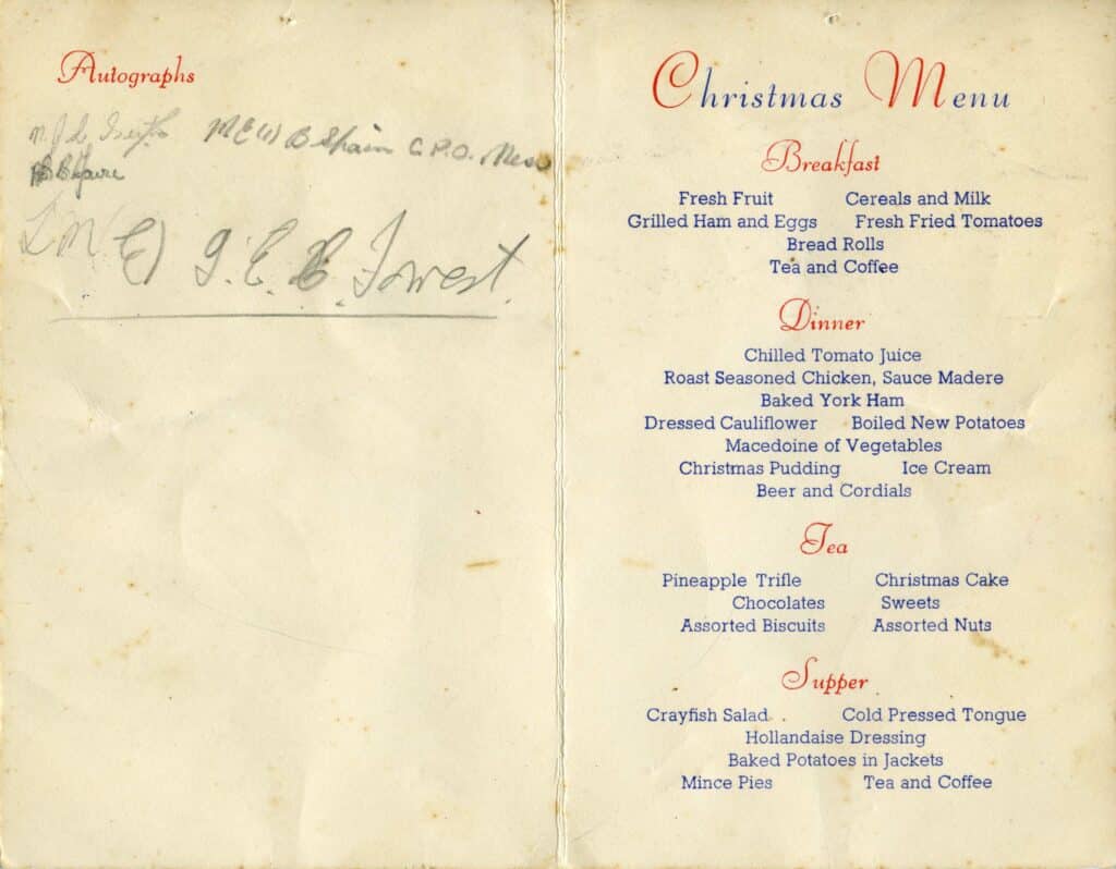 Ever wondered what sailors ate on Christmas Day? These beautifully illustrated Christmas menus, some of which have been signed by crew members, are part of the Museum’s collection. They give us an insight into what was on the menu on 25th December, often many kilometres from home.