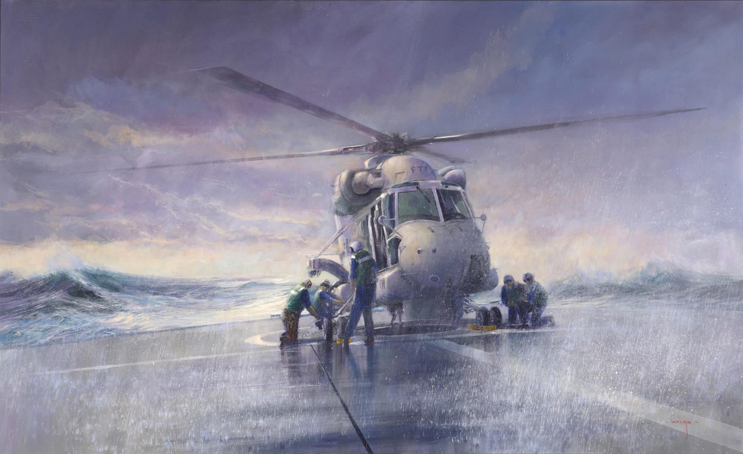 Colin Wynn became the Royal New Zealand Navy’s official artist in 1983. He was well known as one of New Zealand’s leading sea and landscape artists.