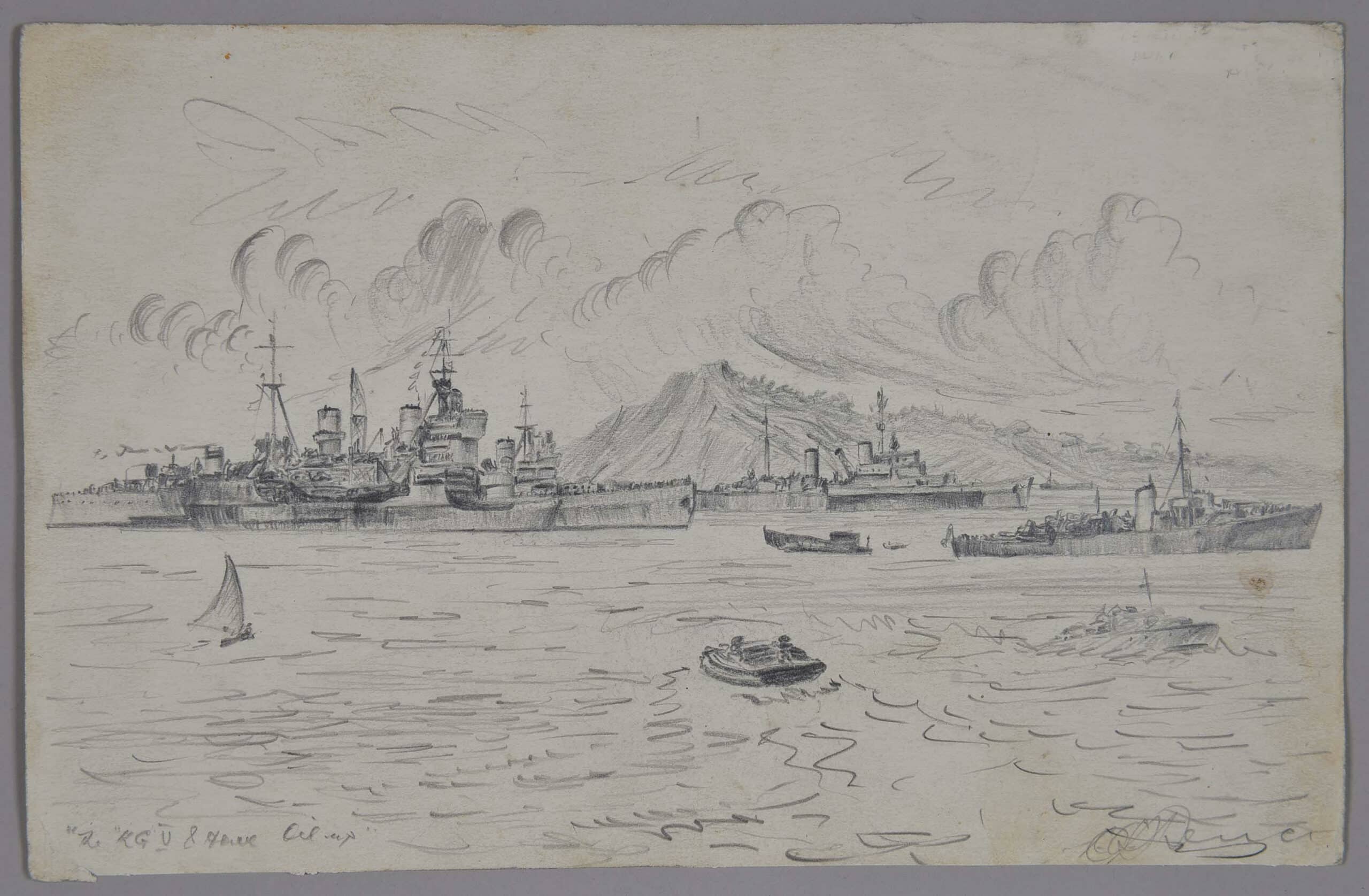 Copyright: All Rights Reserved, reproduced with the kind permission of Pamela Frost and the Estate of O.J.H. Spence. Please contact the National Museum of the Royal New Zealand Navy for permission to copy or use these images.