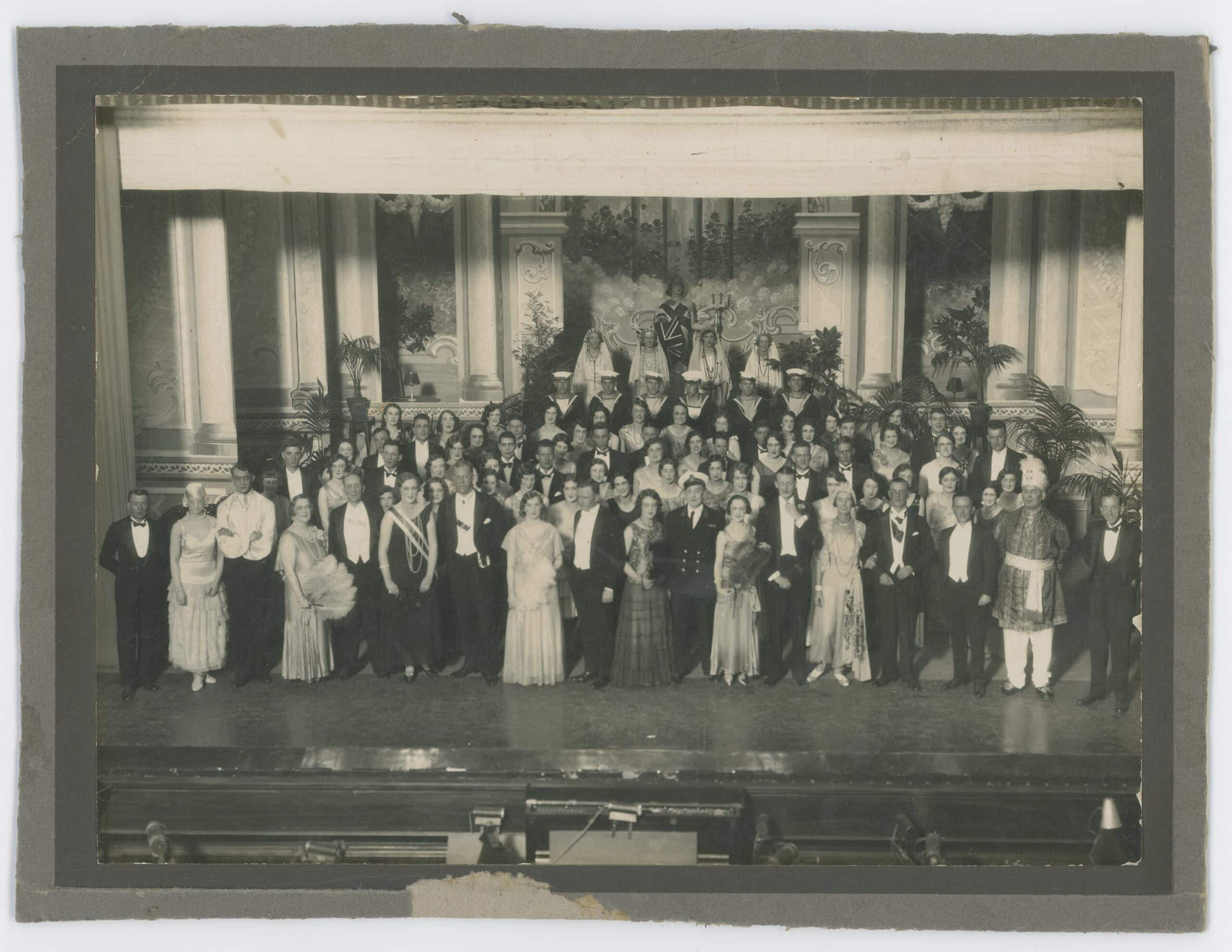 Photograph of the cast of an operatic society at Fullers Opera House, Turam St, Christchurch, 1930.