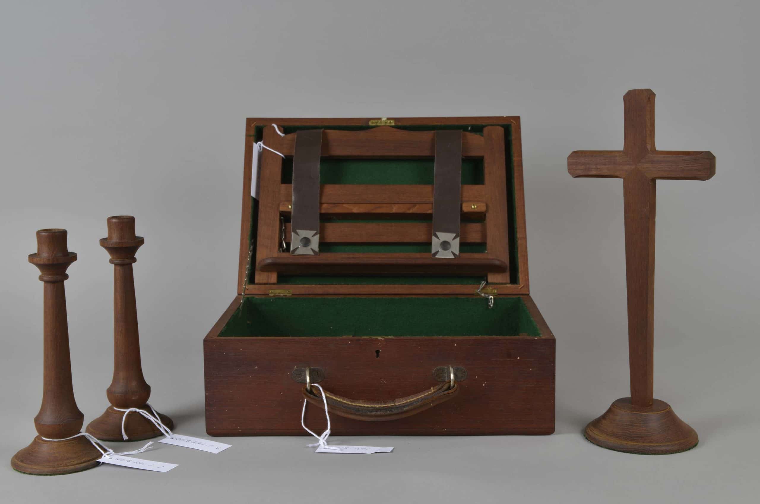Unlike traditional clergymen, a Navy Chaplain is not always able to conduct services from a physical church but instead is required to operate on sea and land deployments. A portable altar was important in making anywhere into a temporary religious space to conduct services.