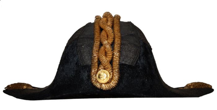 Royal Navy Commander’s cocked hat worn as part of the dress uniform until 1940. Made by Gieves Ltd, UK.