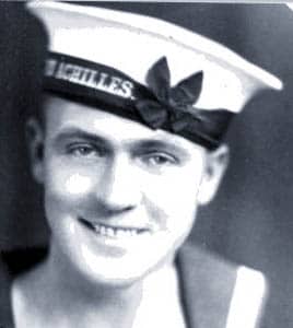 Lieutenant Commander Charles Harris joined the New Zealand Division of the Royal Navy in 1933 as a Stoker. After completing basic training in the shore establishment HMS PHILOMEL he served in the cruisers HMS DIOMEDE and HMS ACHILLES and was onboard the cruiser HMS DUNEDIN in 1937 when that ship was returned to Britain.  From Britain, Harris was sent to Hong Kong and posted to the destroyer HMS DELIGHT.  He rejoined HMS ACHILLES in 1939 for the ship’s return to New Zealand waters and subsequently was still on board, watch-keeping in the boiler room, in the first days of World War II, during the Battle of the River Plate.