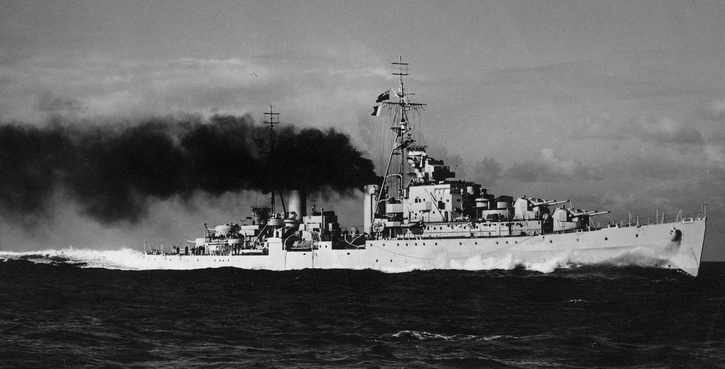 The eighteenth ship to bear the name Bellona was a Improved Dido-class cruiser, launched by Lady Lithgow on 29 September, 1942. One of a class of five anti-aircraft cruisers ordered by the Royal Navy in 1937, Bellona was laid down by Fairfield Ship Building and Engineering, Glasgow, on 30 November, 1939 and commissioned into service on 29 September, 1943. Due to wartime shortages the design was changed during the construction, and only two other ships of this class were constructed: HMS Black Prince and HMS Royalist. HMS Bellona was commissioned into active service on 30 September, 1943 and after completion of final acceptance trials, she underwent a work-up at Scapa Flow from November 1943 until January 1944. Towards the end of 1943, Bellona was adopted by the people of Fifeshire, an association which remained with the ship throughout its life.