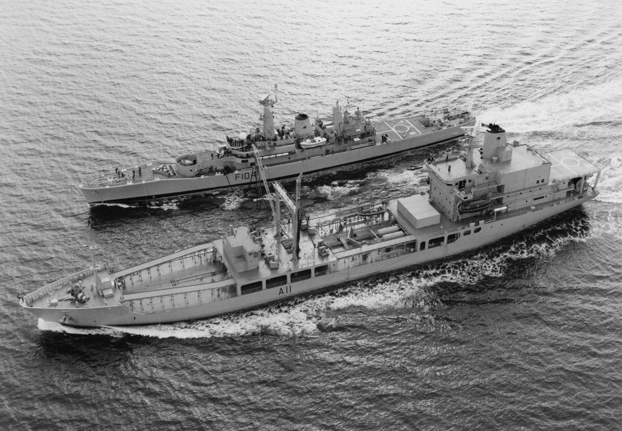 - 175 cz (about 150 tonnes) of F44 (AVCAT) AVIATION FUEL. Fuel was transferred while ships were underway utilising the replenishment at sea derrick to pass a fuel hose across to the receiving ship.