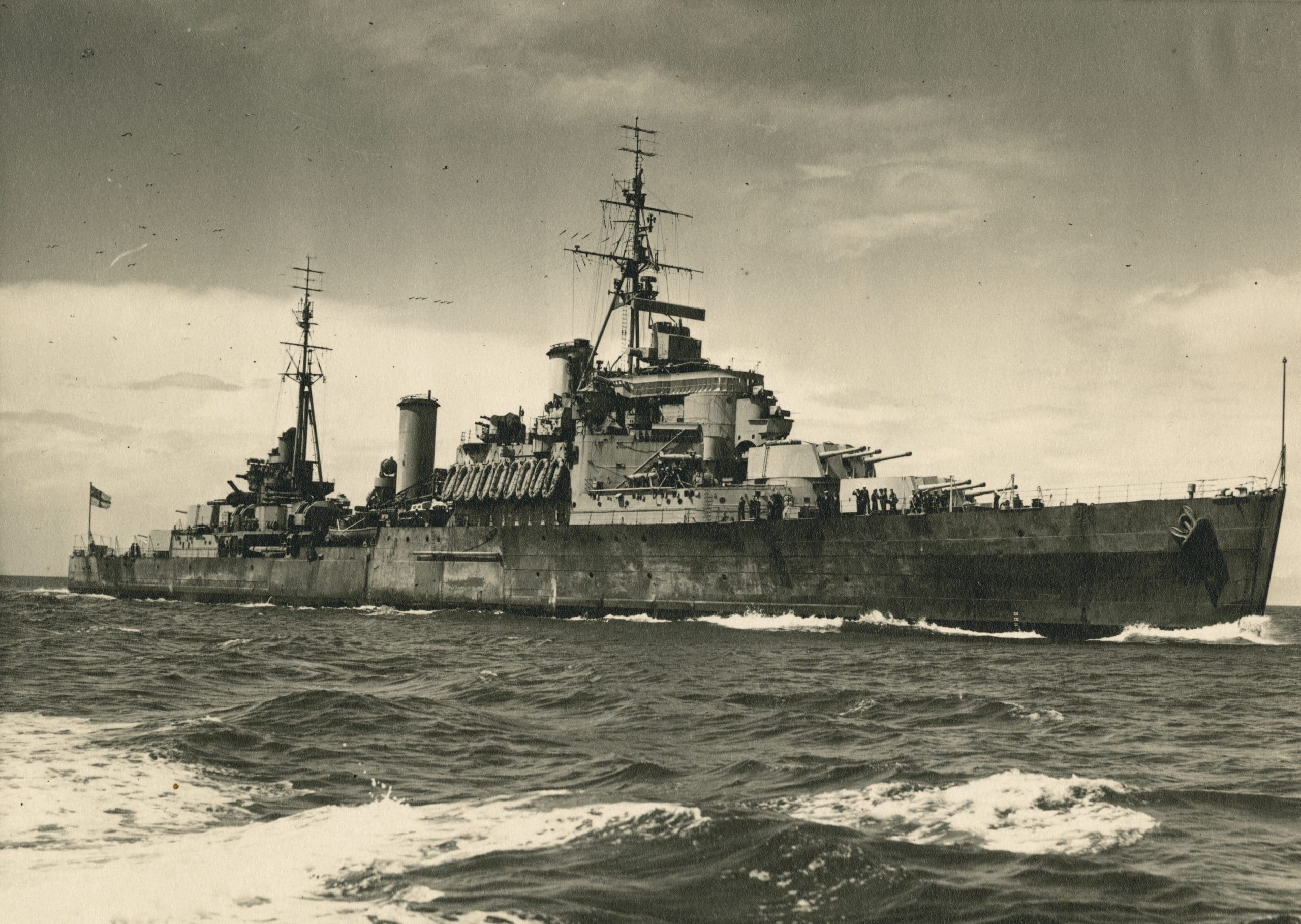 Gambia was ordered under the 1938 Naval Programme and was one of seven cruisers planned for this class. This was a new cruiser design for the Royal Navy and it met the requirements of the 1936 London Naval Treaty that restricted displacement to 8,000 tons. Gambia was been laid down in 1939, in the yard of Swan Hunter & Wignam Richardson at Wallsend on Tyne. She was the seventh to be laid down. She was launched on 30 November 1940 but was not completed until 21 February 1942 and was commissioned in the same month. Her first deployment was with the Eastern Fleet which included the assault on Madagascar, Operation IRONCLAD. In early 1943 she was deployed to the East Indies. She then returned to Britain for a refit and modernisation. This work included the removal of the two aircraft and the upgrading of radar and communications for antiaircraft duties. One of the cranes was retained to handle the ship’s boats and the hangar was converted into offices and a cinema as it had been on other ships that had their aircraft removed. Her anti-aircraft defences were revamped during her wartime service. Two 20mm guns on X-turret was insufficient AA defence for a ship of her type. More pom-poms were added including single pom-poms which was very unusual for a cruiser in 1942. After emerging from refit in November 1942, all the single mount 20mm and pom-poms had been removed and replaced with ten twin 20mm power-operated mountings.