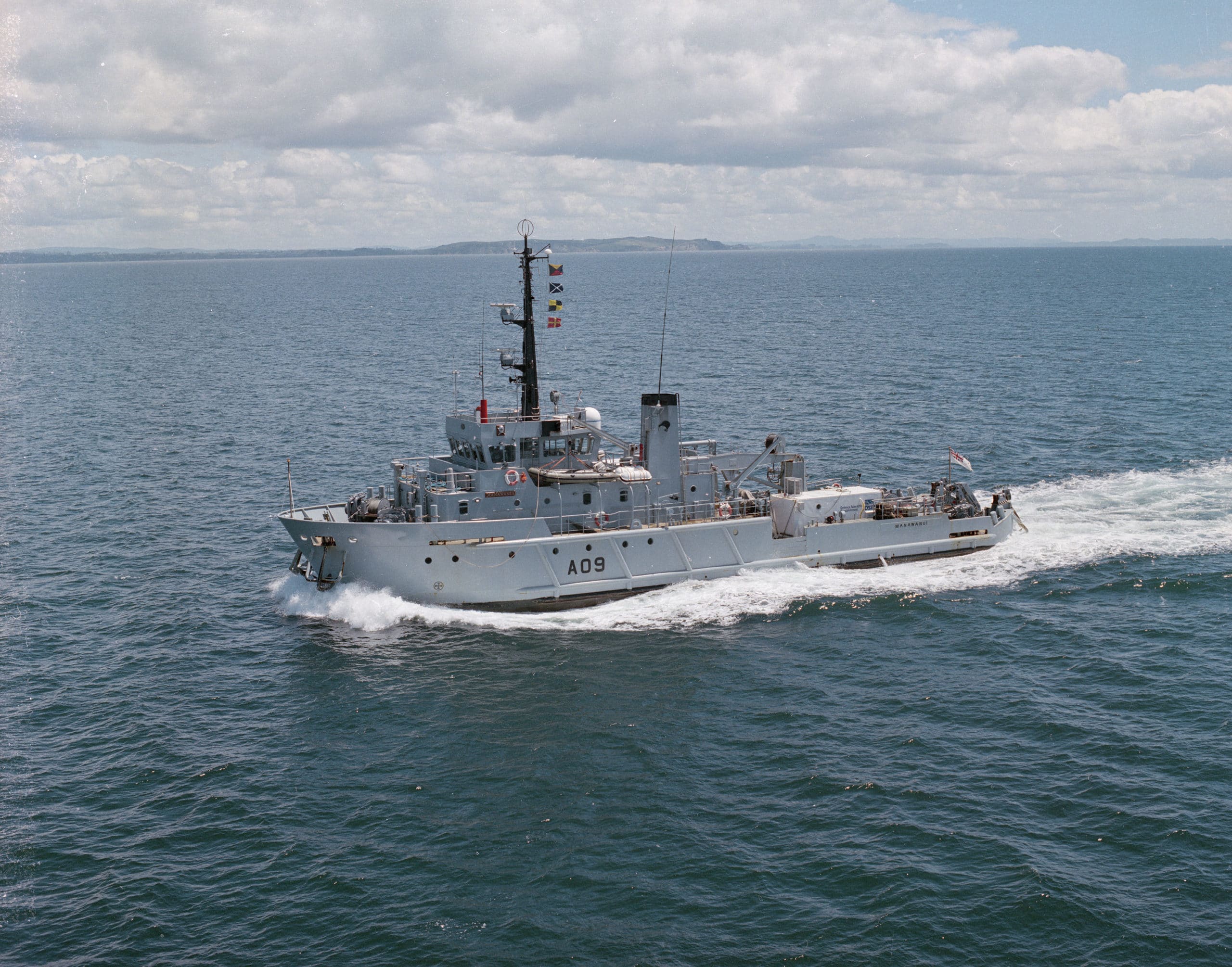 Manawanui was delivered to the Ministry of Defence and commissioned into the Royal New Zealand Navy in 1988.