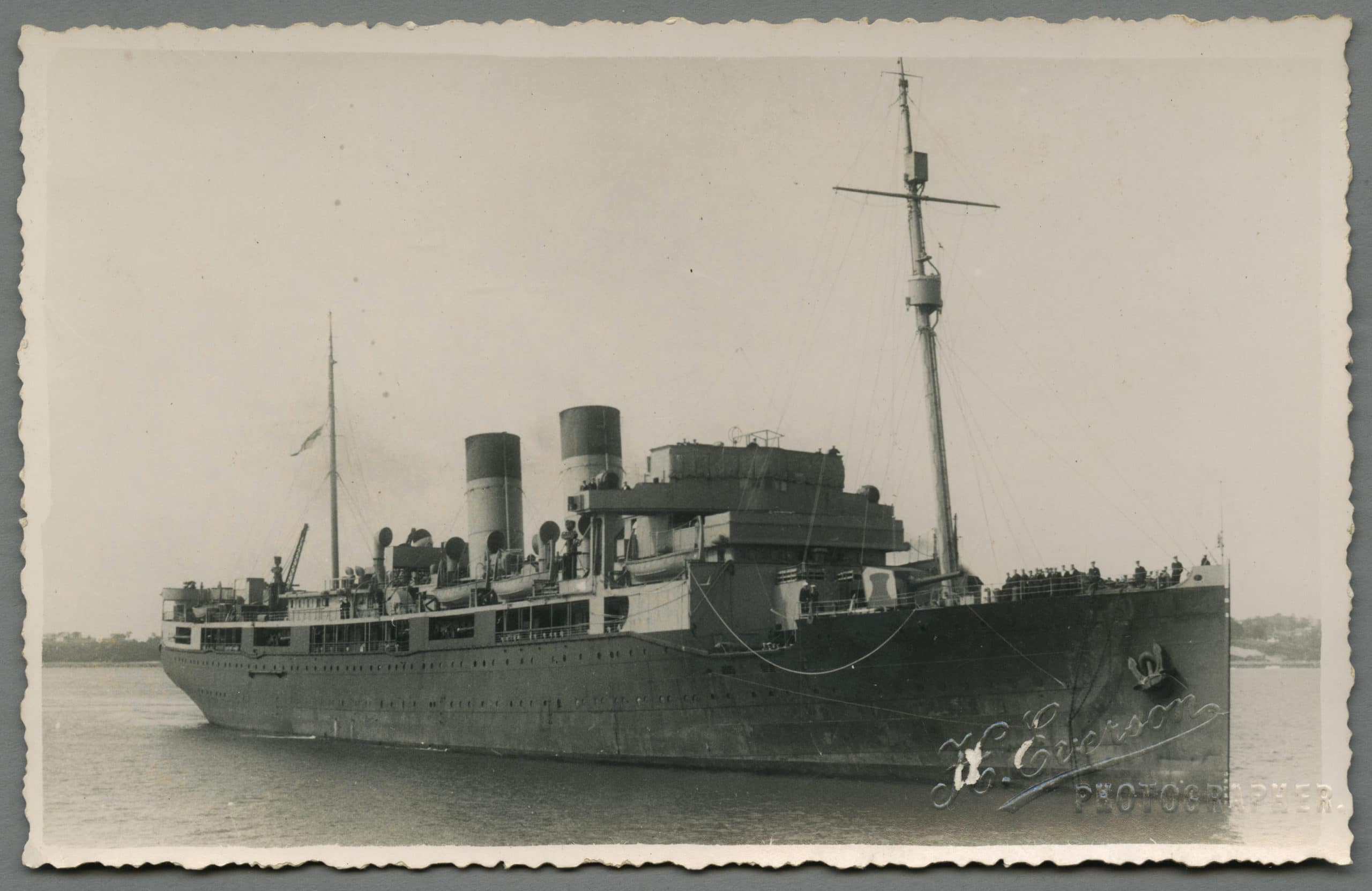 Having been laid-up at Auckland since 1936, Monowai was requisitioned for war service with the New Zealand Naval forces on 19 October 1939. Converted to an Armed Merchant Cruiser the ship served in the South Pacific until 1943 when it was decided that it would be better employed as a landing ship.