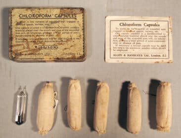 In Britain and the wider Commonwealth, chloroform was the most commonly used anaesthetic. Chloroform capsules could be crushed into a handkerchief to produce fumes that would quickly render a patient insensible. The instructions printed on chloroform capsules warn against exceeding a dose of two capsules. Chloroform was generally considered a safe and effective anaesthetic by British physicians in this period. [1]