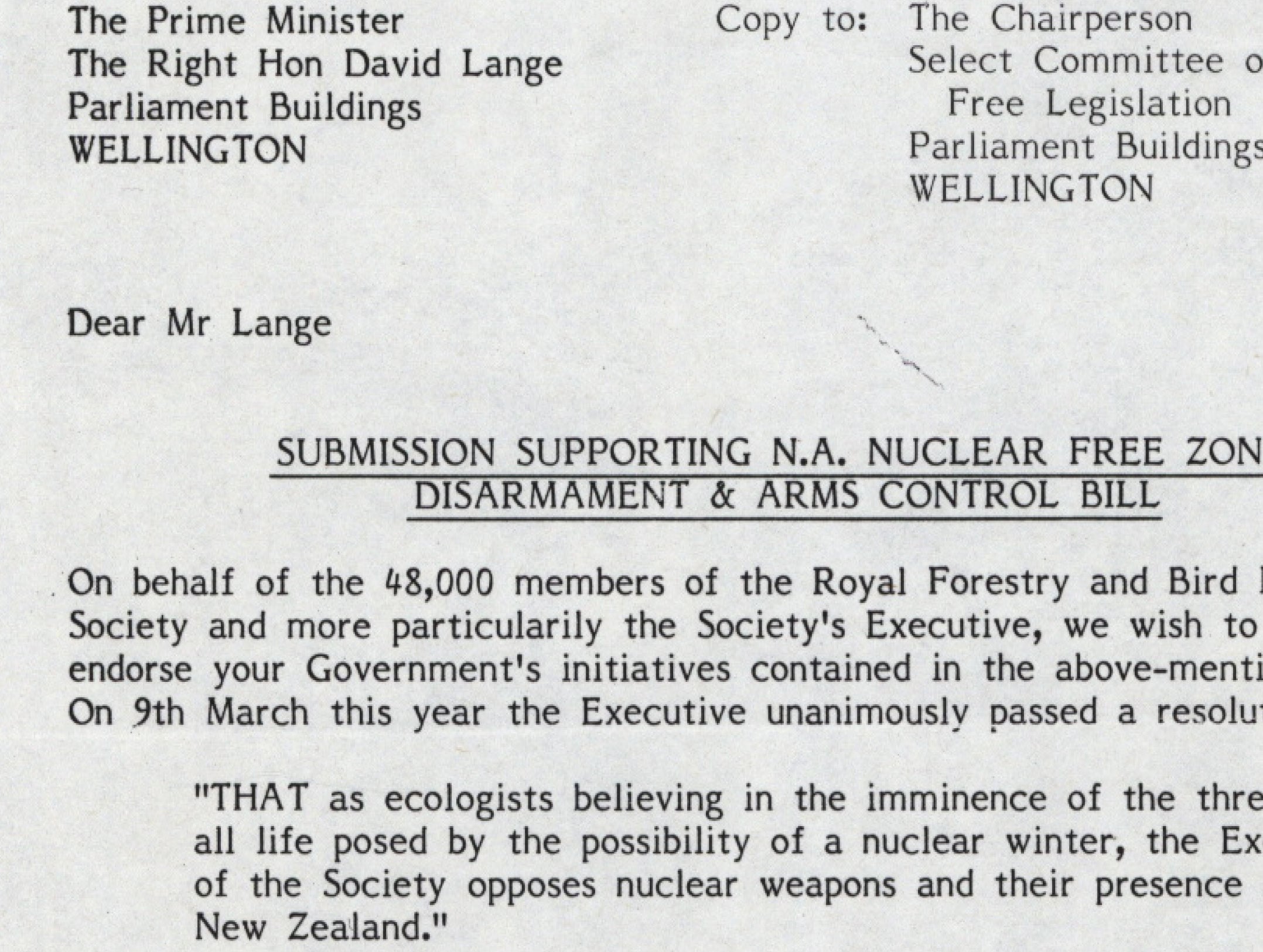 Anti-nuclear legislation letters of support