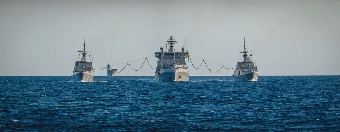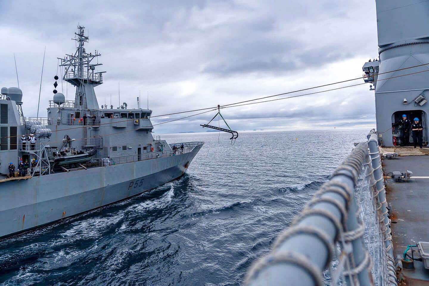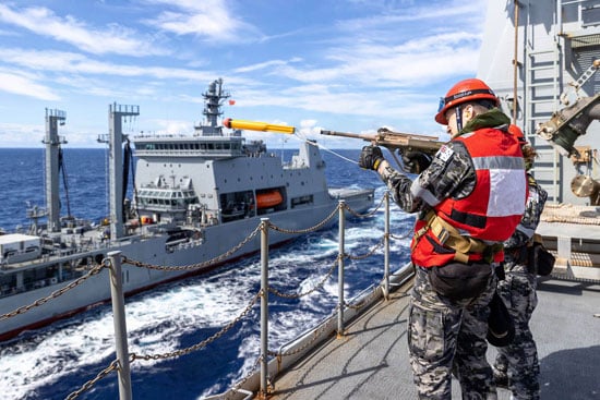 It took HMNZS Aotearoa eight and a half hours to transfer 3.35 million litres of ship and airplane fuel to USS Boxer, a US Navy ship, while in the Pacific Ocean in August 2024!